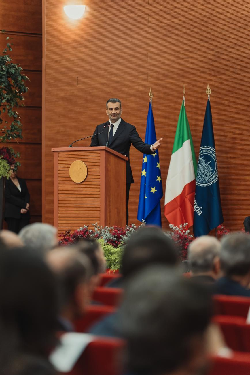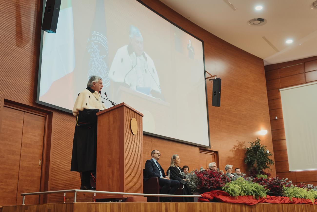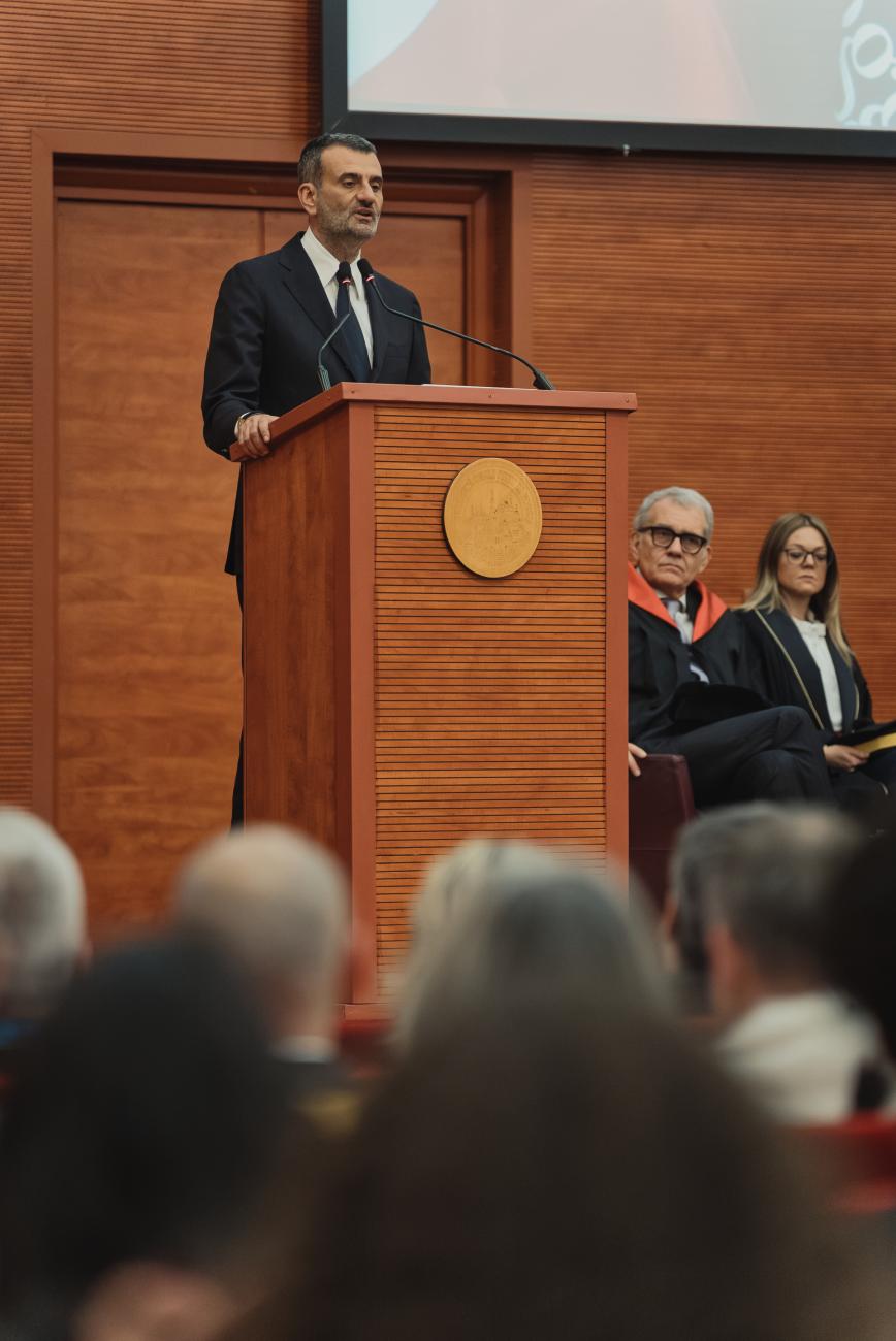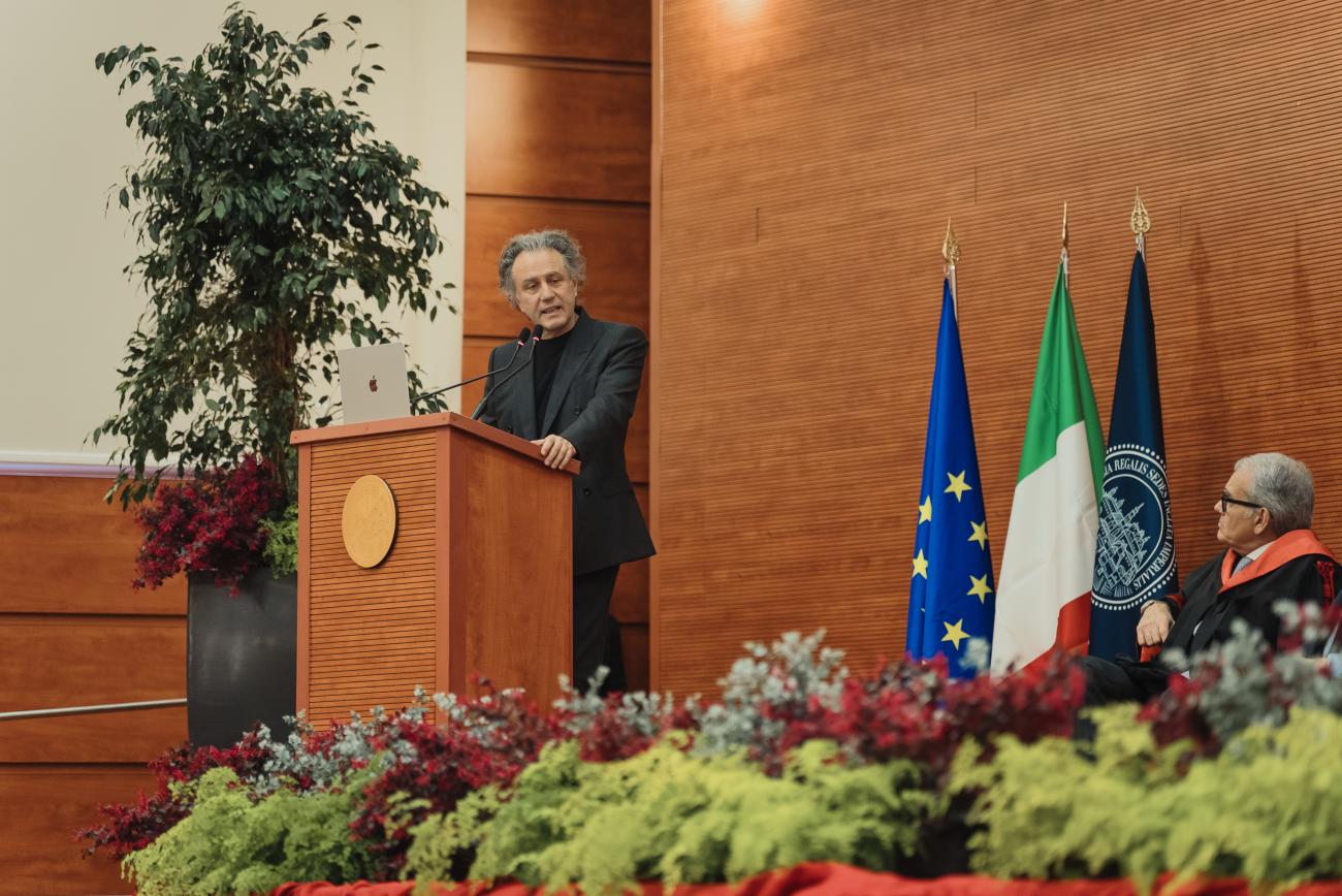 Come da tradizione, il primo intervento è stato quello del Magnifico Rettore, Lorenzo Lo Muzio, che ha presentato una relazione incentrata sul Piano strategico dell’Ateneo, definito come “una promessa reciproca” tra Istituzione, Comunità accademica e Territorio. “La nostra Università, ancora giovane, possiede una qualità rara e preziosa: la capacità di immaginare, e in venticinque anni di storia abbiamo dimostrato che, anche in contesti complessi, è possibile costruire eccellenza, creare opportunità e attrarre nuove energie. Oggi siamo chiamati a un passo successivo: trasformare la crescita in rigenerazione, trovando il coraggio di cambiare senza perdere il senso della nostra missione, non accontentandoci di gestire l’esistente, ma costruendo ciò che ancora non c’è. Ed è forse questa la conquista più autentica di questi anni: aver compreso che una Comunità accademica non cresce per i risultati raggiunti, ma per la qualità delle domande che continua a porsi. Perché l’Università, nella sua essenza più profonda, non è il luogo della conservazione del sapere, ma il luogo in cui una società decide che vale ancora la pena comprendere il mondo prima di cambiarlo".