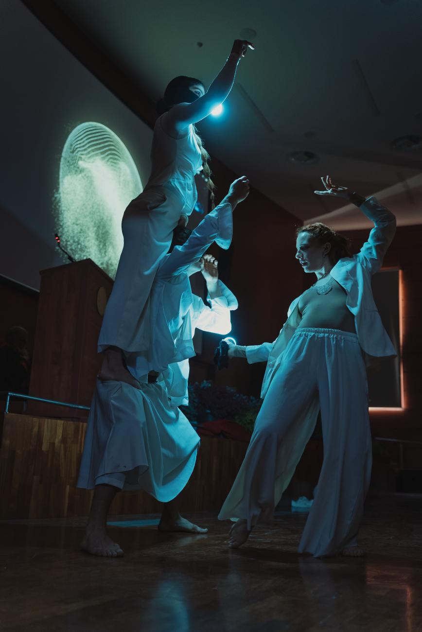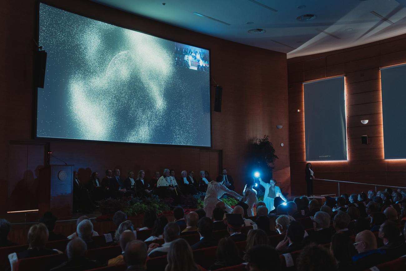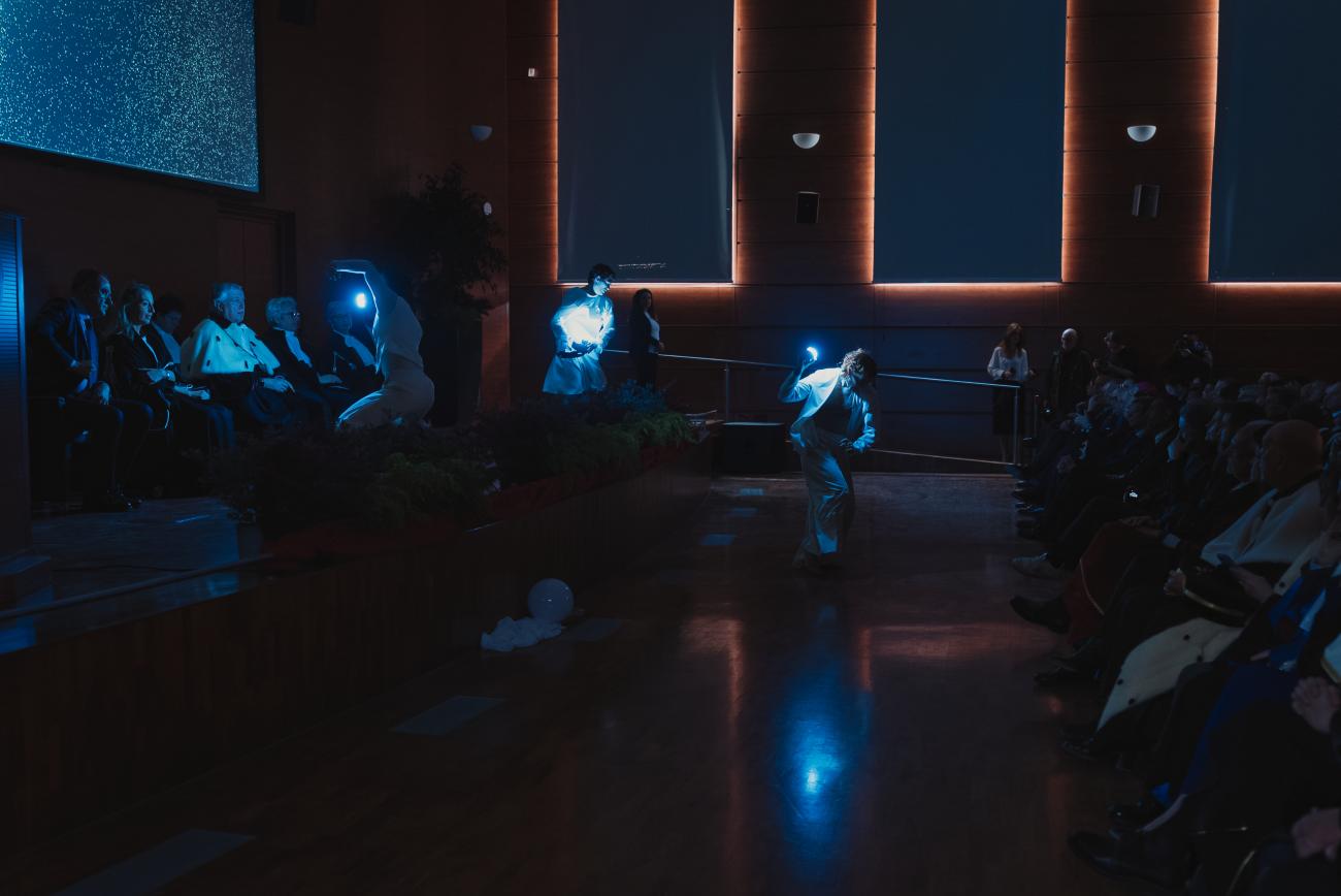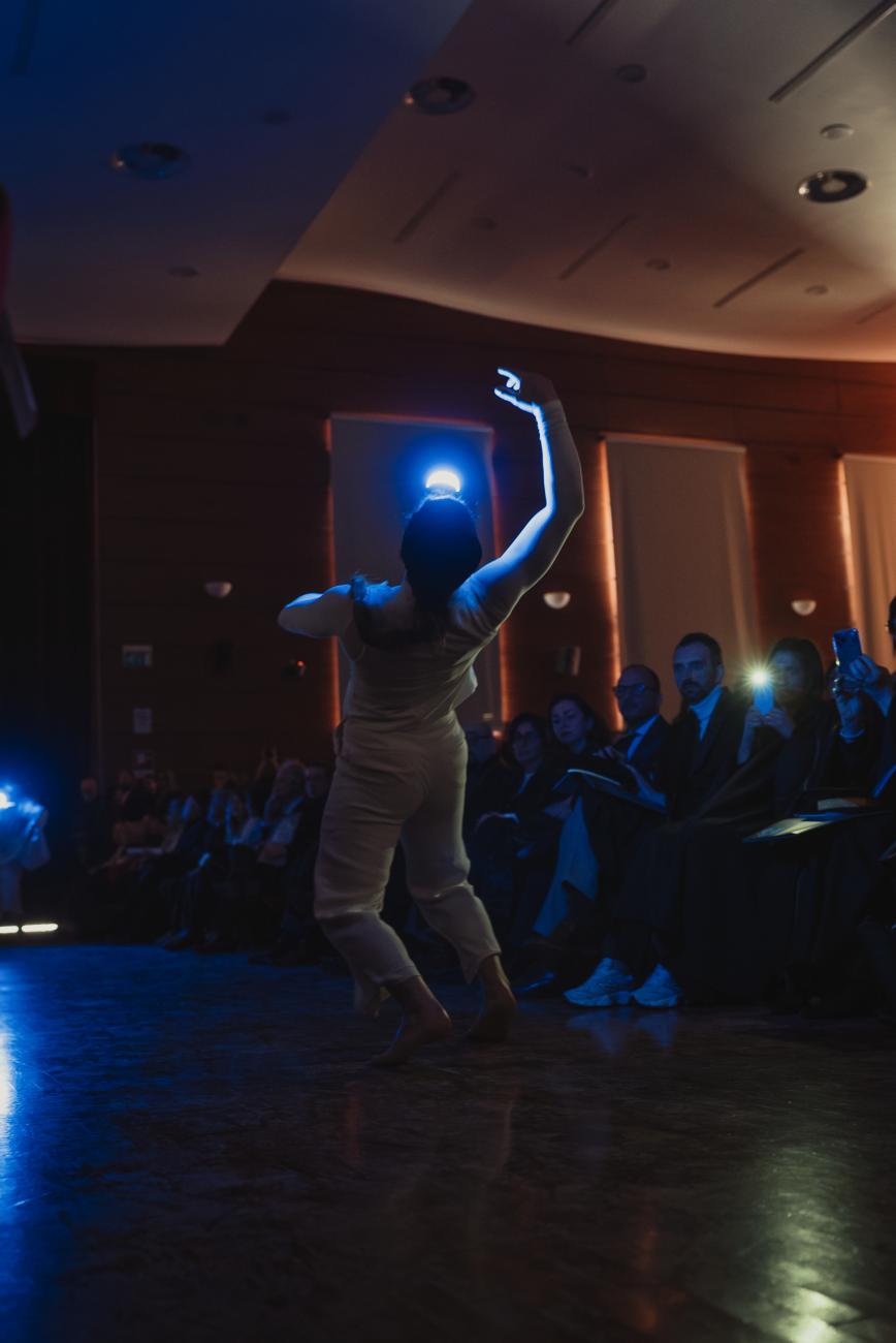 A conferire all’evento un carattere distintivo e contemporaneo è stata la performance artistica della compagnia Eleina D, scelta volutamente innovativa rispetto al protocollo accademico. Attraverso un linguaggio espressivo capace di coniugare ricerca artistica e suggestione simbolica, la compagnia ha interpretato e anticipato il tema della visione, offrendo al pubblico una chiave di lettura originale e coinvolgente dell’intero evento.