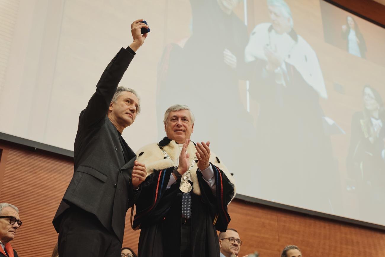 Momento particolarmente significativo della cerimonia è stata la lectio magistralis di Felice Limosani, artista multidisciplinare di origini foggiane, protagonista della Lectio magistralis dal titolo “Immersive Humanities. Un paradigma visionario per la cultura dell’esperienza”. "Ricevere il Sigillo dell’Università mi onora nel mio percorso di ricerca e mi emoziona come foggiano. Mi auguro che questa lectio possa essere un invito, per le studentesse e gli studenti, a costruire un futuro tecnologico capace di custodire il valore dell’umano".