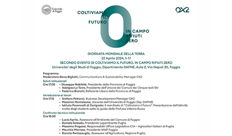Dalla collaborazione fra il Dipartimento di Scienze Agrarie, Alimenti, Risorse Naturali e Ingegneria (DAFNE) dell’Università di Foggia e la società svedese di energie rinnovabili OX2 nasce il progetto "COLTIVIAMO IL FUTURO, In campo rifiuti zero" su