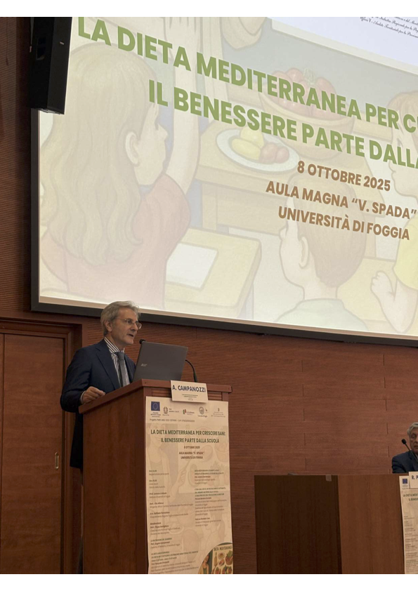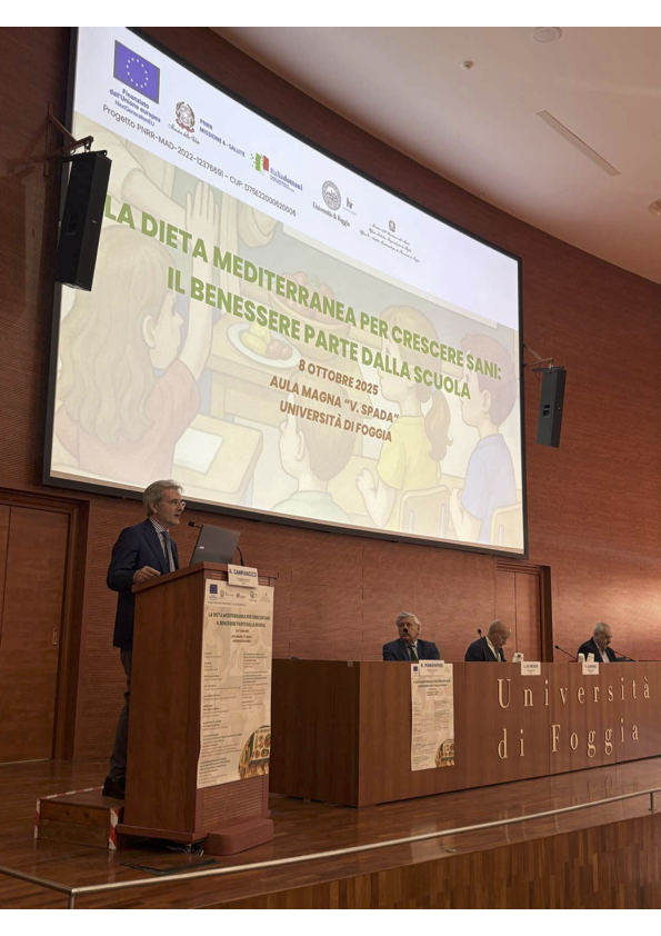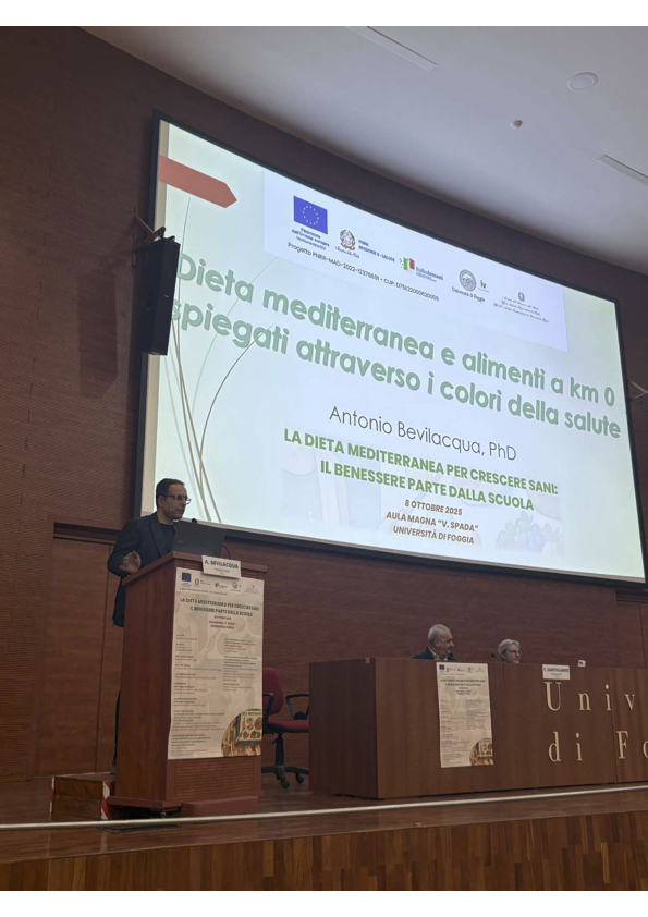 In data 8 ottobre 2025 il convegno dal titolo "La dieta mediterranea per crescere sani: il benessere parte dalla scuola" ha consentito la divulgazione dei risultati delle attività svolte nell'ambito del progetto ed ha visto la partecipazione degli insegnanti di numerose scuole dell'ambito territoriale della Provincia di Foggia. Nella locandina il programma dettagliato ed i nominativi dei relatori intervenuti.